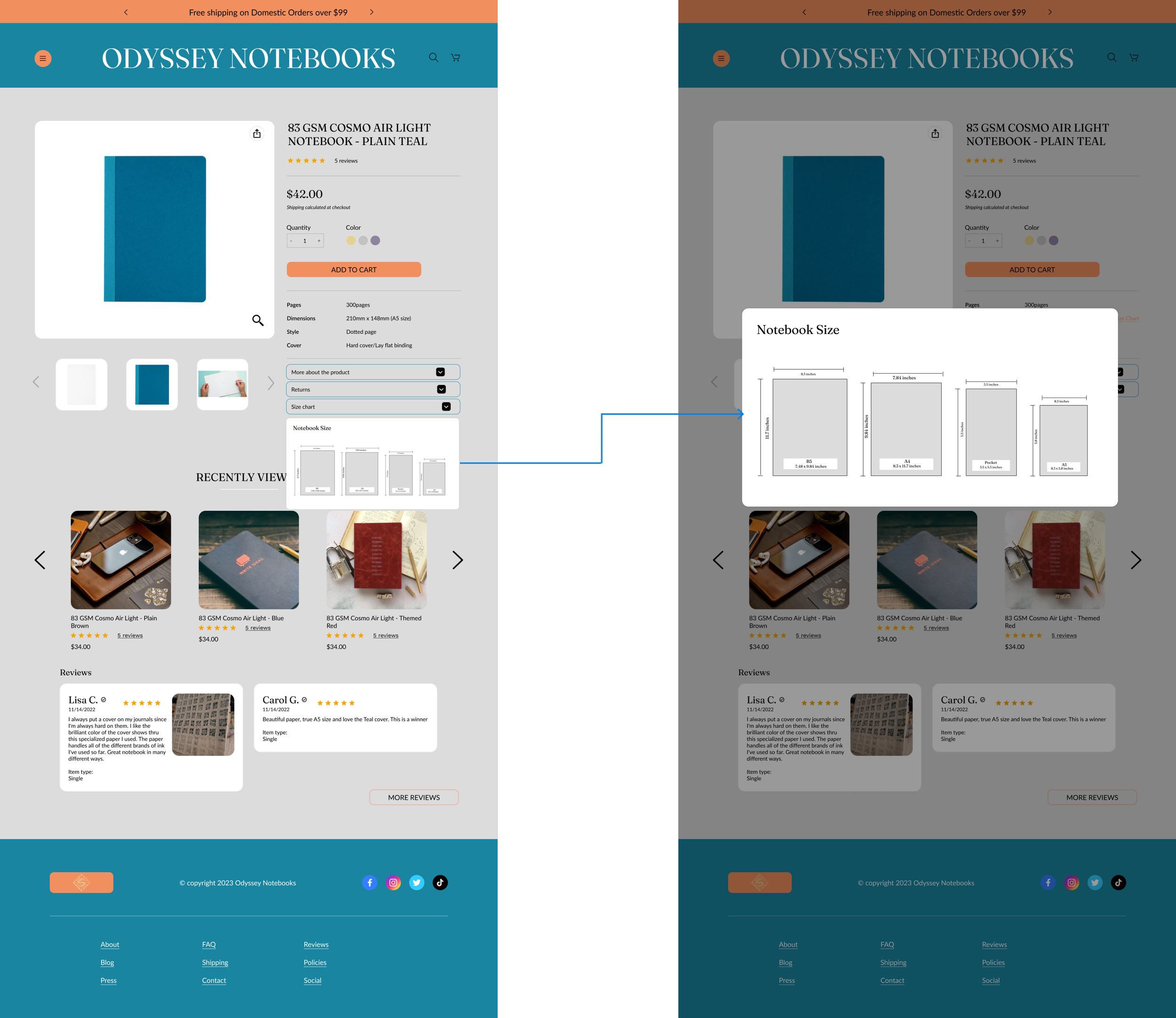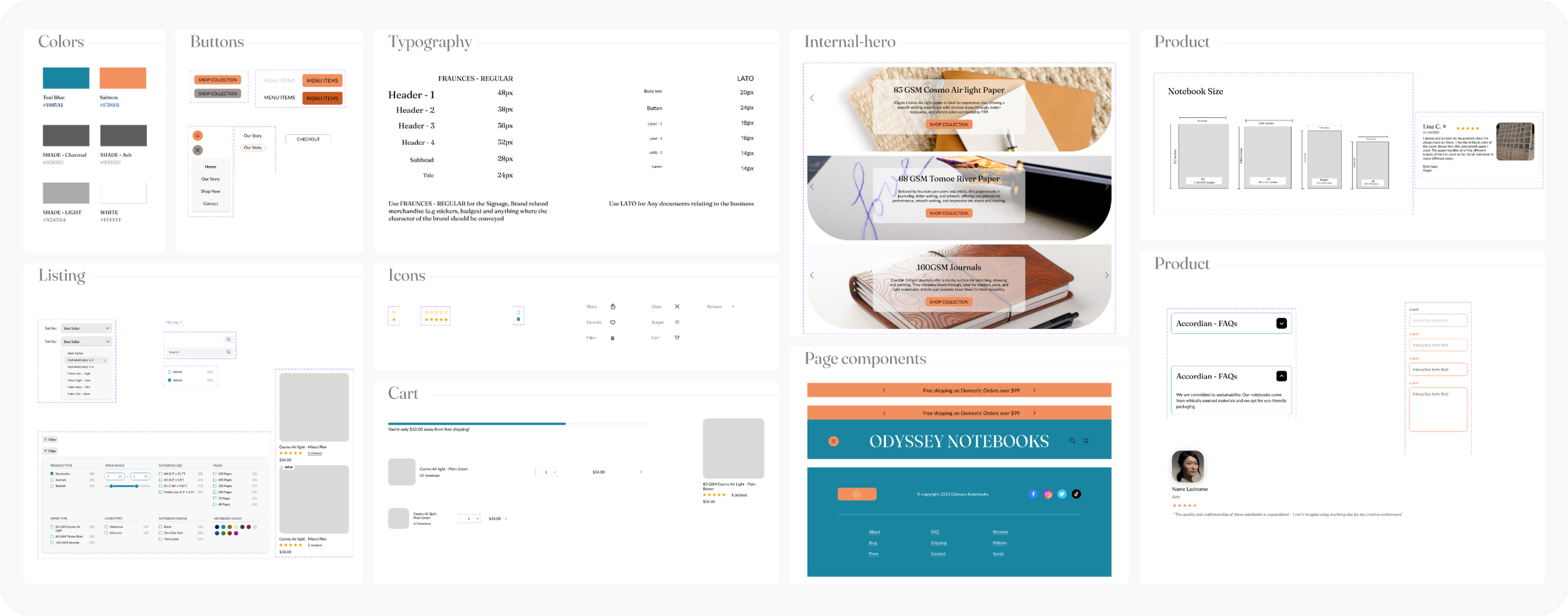 Additionally, a website redesign that showcases the unique features of Odyssey Notebooks, including their special paper types, helps users effortlessly find the perfect item for purchase.